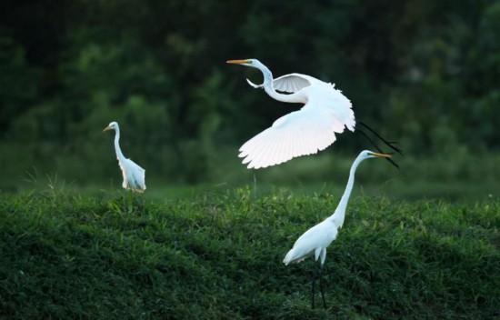 鷺鳥在臨沂市郯城縣郯城街道飛舞、休憩,構(gòu)成一幅美麗的鄉(xiāng)村生態(tài)美景。
