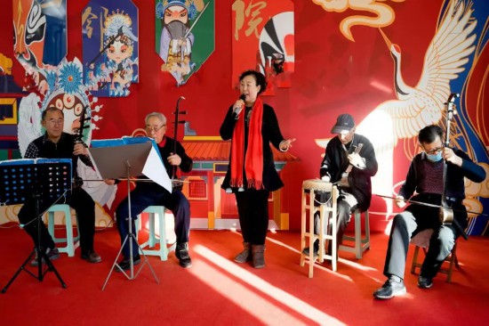 東營經(jīng)開區(qū)勝利街道錦華社區(qū)“京劇國粹之家”藝術(shù)團(tuán)在社區(qū)開展京劇交流活動。