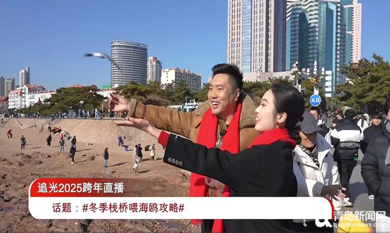 “來棧橋,赴一場與海鷗的冬日之約!”“追光2025—青島網(wǎng)絡(luò)跨年直播”活動在棧橋拉開帷幕。本場跨年直播從2024年12月31日12時起,總計13個小時,布設(shè)20多個點位,聯(lián)動七區(qū)三市。
