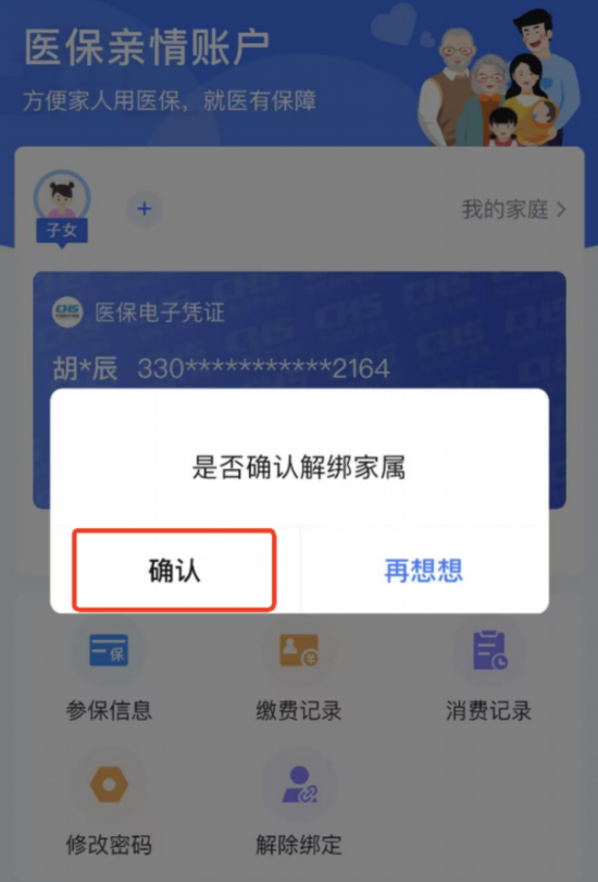進(jìn)入國家醫(yī)保服務(wù)平臺(tái)→親情賬戶,選擇綁定的家庭成員,點(diǎn)擊“解除綁定”即可一鍵解綁。