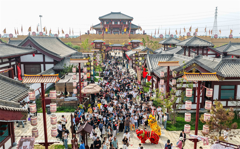 2025年10月1日,國慶假期第一天,山東樂陵影視城迎來如潮游客,景區(qū)內(nèi)全天候舉辦古風舞蹈、片場秀、煙火秀、無人機秀、魔術秀等豐富活動,為到場游客提供沉浸式觀賞游玩體驗。(賈鵬 崔昕)