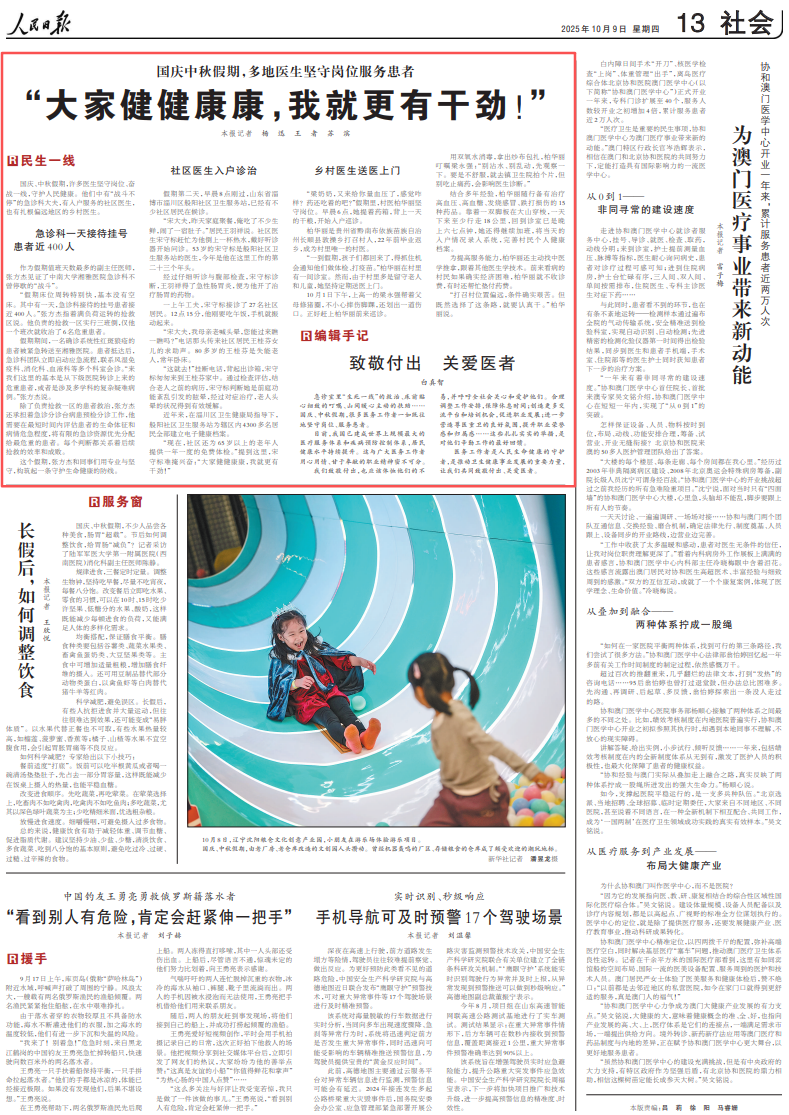 國慶、中秋假期,許多醫(yī)生堅(jiān)守崗位、奮戰(zhàn)一線,守護(hù)人民健康。他們中有“戰(zhàn)斗不?!钡募痹\科大夫,有入戶服務(wù)的社區(qū)醫(yī)生,也有扎根偏遠(yuǎn)地區(qū)的鄉(xiāng)村醫(yī)生。