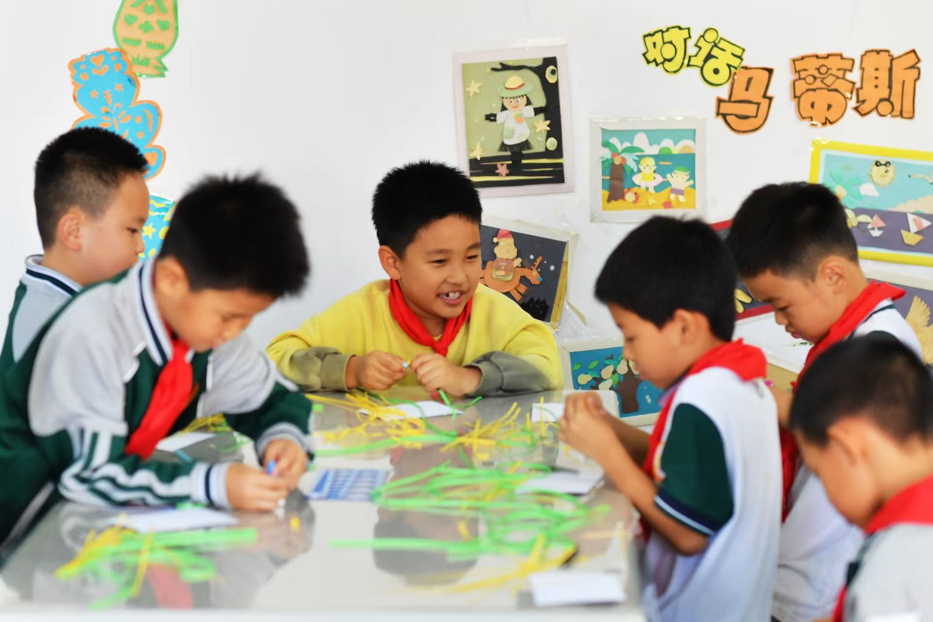 2025年10月14日,山東省青島市市北區(qū)洮南路小學舉辦非遺進校園活動,孩子們在老師的指導下,通過衍紙畫形式,展開紙藝學習和傳承,感受傳統(tǒng)文化的魅力。(王海濱)