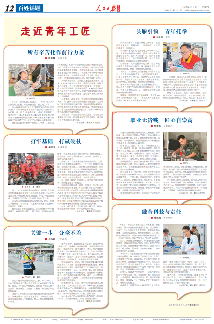 從手握磚刀到站上宣講臺,我用自己的經(jīng)歷告訴大家,職業(yè)無貴賤,匠心自崇高。作為一名新時代產(chǎn)業(yè)工人,我將繼續(xù)用汗水和智慧,為時代的大廈添磚加瓦,用實(shí)際行動詮釋勞模精神、勞動精神、工匠精神,這就是我對青春最好的回答。(本報記者 王 者采訪整理)
