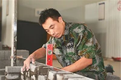 成長之路不會一帆風(fēng)順。我曾參加省技能大賽,因經(jīng)驗(yàn)不足僅獲第十四名。那次失利像一盆冷水澆醒了我——工匠之路,沒有捷徑可走,唯有不斷學(xué)習(xí)。回去后,我勤加思考、刻苦練習(xí),不斷提高砌筑墻體的垂直度和平整度。2021年,我踏上第七屆全國職工職業(yè)技能大賽砌筑工決賽賽場。當(dāng)裁判宣布我最終奪冠時,我感覺,那些與嚴(yán)寒酷暑為伴、與磚墻為伍的日夜值了!