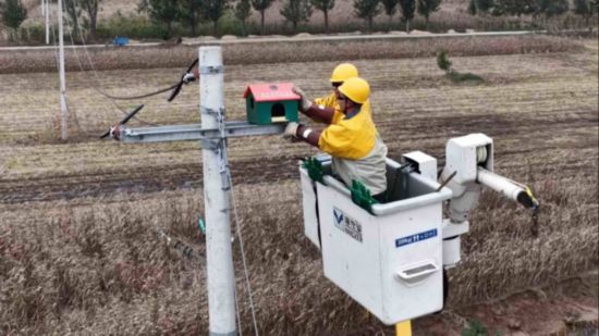 作為黃河入魯?shù)谝豢h,東明縣擁有廣闊的黃河灘區(qū),是每年候鳥遷徙的重要停歇地。每年秋冬之交,數(shù)以萬計的候鳥途經這里,針對鳥類在鐵塔筑巢容易引發(fā)安全風險的難題,今年,國網東明縣供電公司通過自主搭建絕緣材料人工鳥巢,并組織人員科學安裝在鐵塔防觸電區(qū)域,最大限度減少鳥類不慎觸電風險,成功將“鳥線矛盾”轉化為“鳥線和諧”,為即將到來的鳥類棲息提供了新的家園。