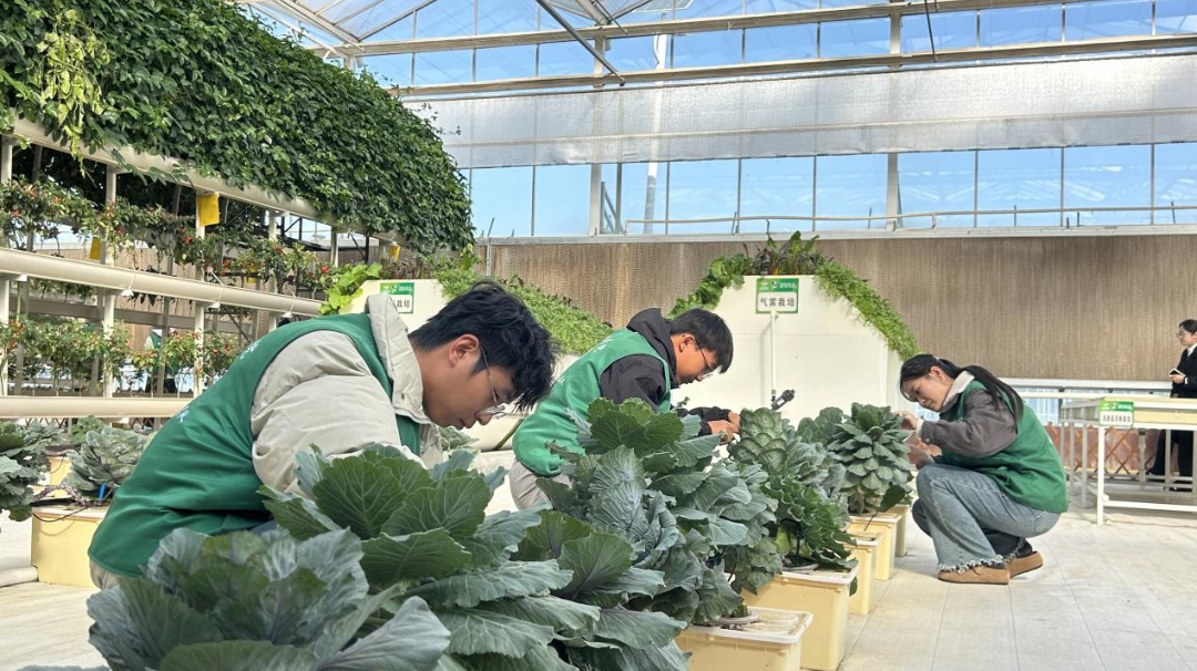 講解結(jié)束后,志愿者迅速變身“環(huán)保衛(wèi)士”,分成栽培區(qū)清潔組和廢棄物處理組開啟忙碌的志愿工作。栽培區(qū)清潔組的志愿者走進(jìn)智能聯(lián)動(dòng)溫室和冬暖式大棚,仔細(xì)清理著殘留的基質(zhì)和枯枝落葉,并分類裝袋投放到園區(qū)指定環(huán)?;厥拯c(diǎn);廢棄物處理組的志愿者收集蔬菜殘葉、根莖等農(nóng)業(yè)廢棄物,運(yùn)輸至資源化處理區(qū),按“無雜質(zhì)、無病害”標(biāo)準(zhǔn)完成堆肥前期分揀;工作人員不時(shí)巡回指導(dǎo),認(rèn)真記錄著志愿者們的工作成效,園區(qū)里處處是熱火朝天的勞動(dòng)景象。