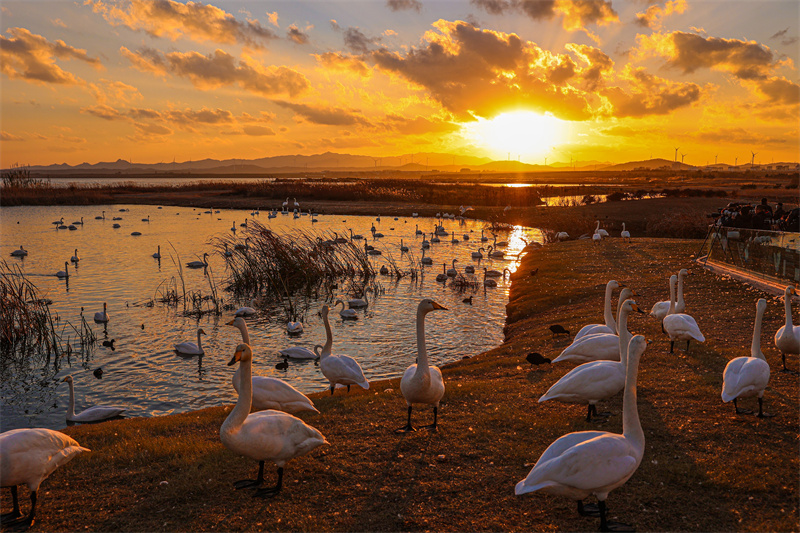 清晨的榮成大天鵝國家級自然保護(hù)區(qū)內(nèi),水面如鏡。這群遠(yuǎn)道而來的“白色精靈”,或悠然戲水,或引頸長鳴。岸邊,已有不少市民游客拍照打卡,迎接這些熟悉的“老朋友”。而大天鵝年復(fù)一年如期“赴約”,離不開榮成市持續(xù)不斷地生態(tài)守護(hù)與保護(hù)區(qū)的精心照護(hù)。