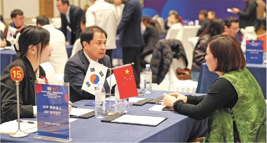 11月20日,2025中國(山東)—韓國友好周開幕式結(jié)束后,韓方企業(yè)、山東經(jīng)濟(jì)園區(qū)及企業(yè)代表開展對口洽談。