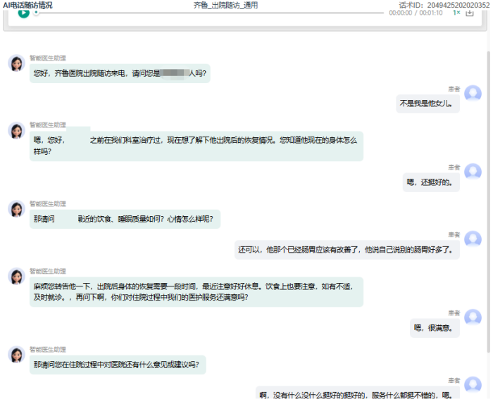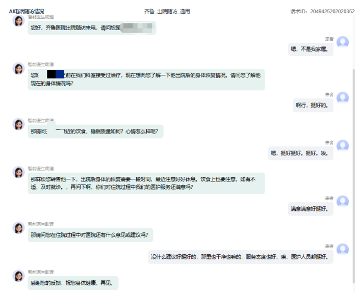 創(chuàng)新模式超擬人,精準隨訪全升級。在現(xiàn)有隨訪體系基礎上,齊魯醫(yī)院正積極推進超擬人AI隨訪技術(shù)的部署與應用。該技術(shù)具備自然語言交互與情感識別能力,推動醫(yī)院隨訪體系向智能化、精準化深度演進,未來將實現(xiàn)大規(guī)模患者隨訪的自動化執(zhí)行,助力醫(yī)院基于隨訪反饋持續(xù)優(yōu)化服務流程,為構(gòu)建更加系統(tǒng)化、人性化的現(xiàn)代醫(yī)院服務模式提供核心驅(qū)動力。