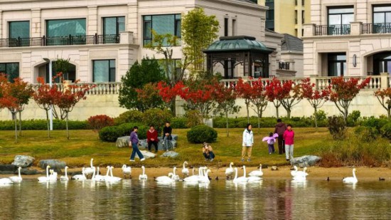 在威海,十月中旬,首批大天鵝飛抵榮成,預告著威?!疤禊Z季”正式開幕。榮成市聚焦資源整合、產(chǎn)業(yè)融合、供需契合三大關鍵環(huán)節(jié)持續(xù)發(fā)力,不斷擦亮“天之盡頭天鵝海岸”全域旅游金字招牌。 連日來,在榮成大天鵝國家級自然保護區(qū),成群結隊的大天鵝在湖面游弋,吸引了眾多游客前來觀賞。