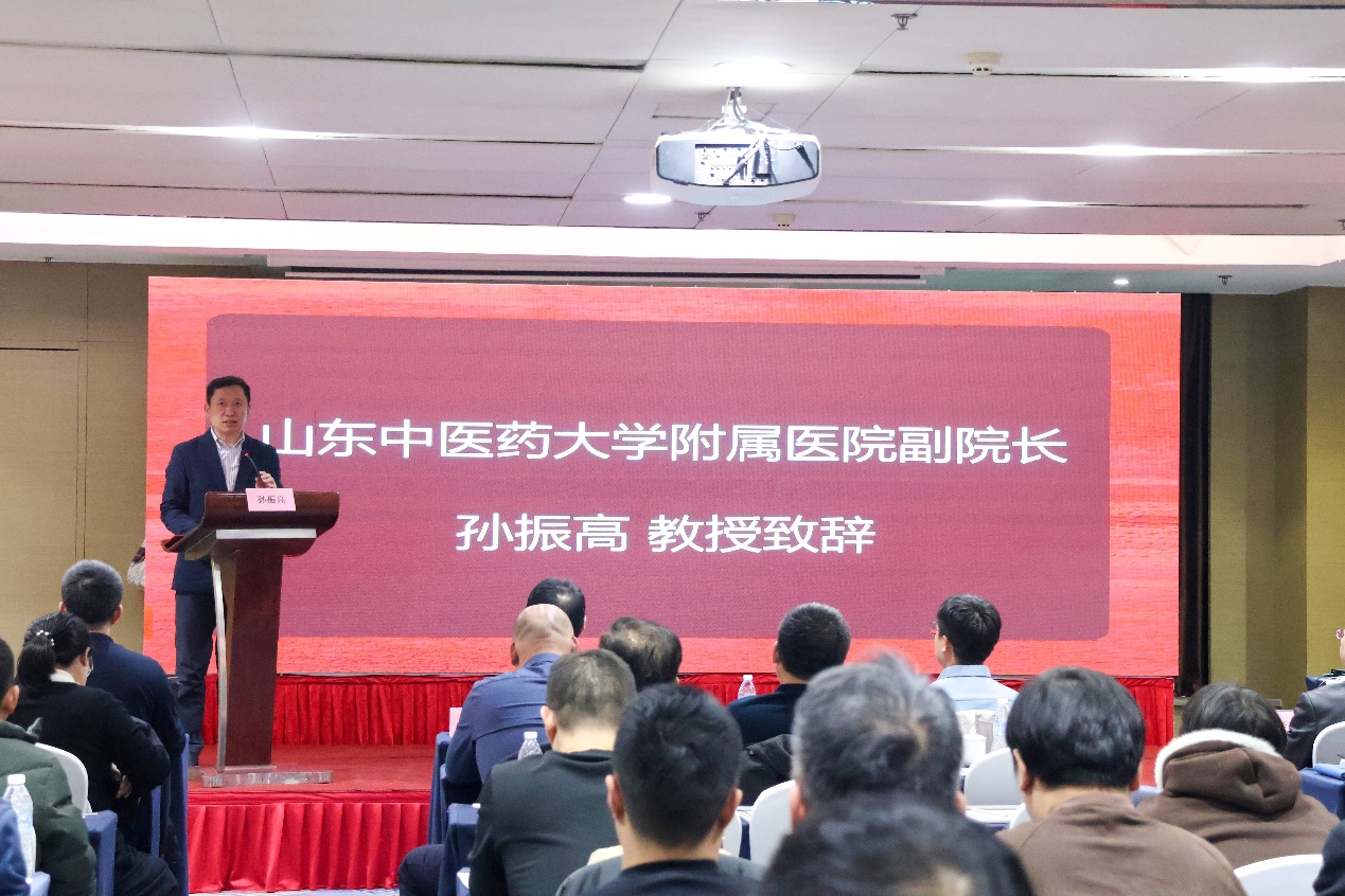 儀式伊始,山東中醫(yī)藥大學附屬醫(yī)院孫振高院長發(fā)表了講話。孫院長對各位專家、同仁的到來表示歡迎和感謝,指出醫(yī)院創(chuàng)面修復(fù)與燒傷整形外科在付小兵院士的指導下,由蘇永濤教授領(lǐng)銜,已建設(shè)成為特色鮮明的重點學科,率先開設(shè)創(chuàng)面修復(fù)專業(yè)方向,構(gòu)建了全鏈條人才培養(yǎng)體系,獲評多項重要資質(zhì)。聯(lián)盟的成立是響應(yīng)國家分級診療政策、推動中西醫(yī)結(jié)合創(chuàng)面修復(fù)事業(yè)發(fā)展的關(guān)鍵一步,將構(gòu)建高效協(xié)同的診療網(wǎng)絡(luò),通過技術(shù)輻射、人才培養(yǎng)、雙向轉(zhuǎn)診等機制,提升基層醫(yī)療機構(gòu)服務(wù)能力,搭建學術(shù)共享與科研攻關(guān)平臺,推動診療方案標準化,提升整體診療水平,為“健康中國”建設(shè)貢獻力量。