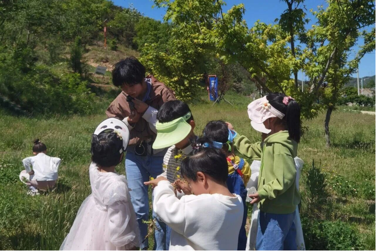 嵩山街道小鎮(zhèn)村的“木也”研學基地成了親子家庭的“首選地”。孩子們背著畫板走進山林,在老師帶領下觀察昆蟲翅膀的紋路、記錄樹葉脈絡的走向,還能用英文分享發(fā)現(xiàn)——自然探索與語言學習的結(jié)合,讓家長直呼“既玩得開心又學得有用”。